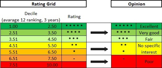 - FUNDCLASS a défini une échelle de notation basé sur le décile moyen