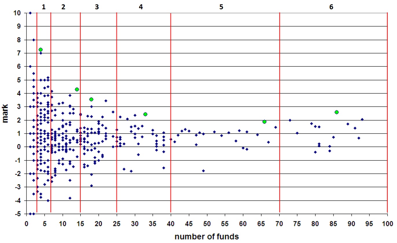 - Nous définissons 8 catégories selon le nombre de fonds notés: